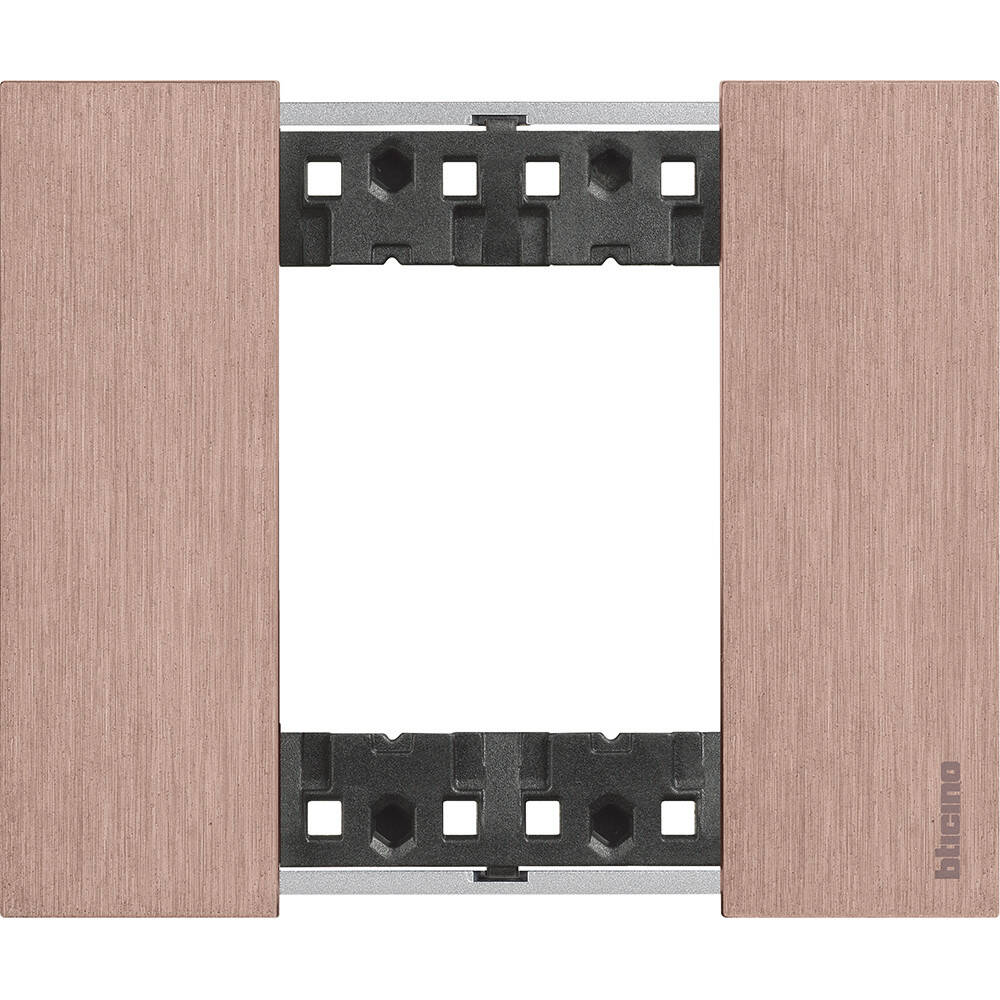 La Placa Embellecedora BTicino Living Now KA4802N_ de 2 módulos en acabado cobre aporta un toque elegante y moderno a cualquier instalación eléctrica de interior. Fabricada por BTicino, garantiza calidad y durabilidad, además de cumplir con las certificaciones CE, RoHS y UKCA. Su diseño minimalista y acabado metálico realzan la estética de mecanismos y teclas, proporcionando una integración perfecta en ambientes contemporáneos. Con protección IP20, esta placa embellecedora ofrece seguridad y resistencia para su uso en interiores. Ideal para quienes buscan combinar funcionalidad y estilo, esta placa es una solución práctica y decorativa para embellecer y proteger los elementos eléctricos en el hogar o la oficina.