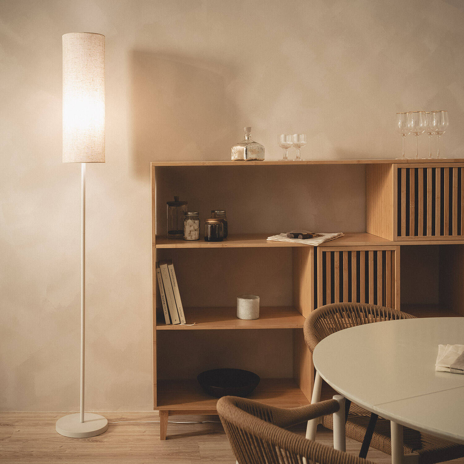 La lámpara de pie Metal Elan combina un diseño minimalista y elegante con funcionalidad para interiores. Fabricada en metal blanco, destaca por su estructura esbelta y pantalla cilíndrica de tejido natural que aporta calidez y estilo a cualquier estancia. Compatible con bombillas E27 de hasta 40 W, ofrece una iluminación puntual ideal para salones, dormitorios o zonas de lectura. Su interruptor de pie facilita el encendido y apagado, mientras que su protección IP20 la hace adecuada para ambientes interiores. Resistente a temperaturas entre -20 °C y 50 °C, esta lámpara cuenta con certificaciones CE y RoHS, garantizando calidad y seguridad. Disfruta de una pieza versátil con 3 años de garantía.