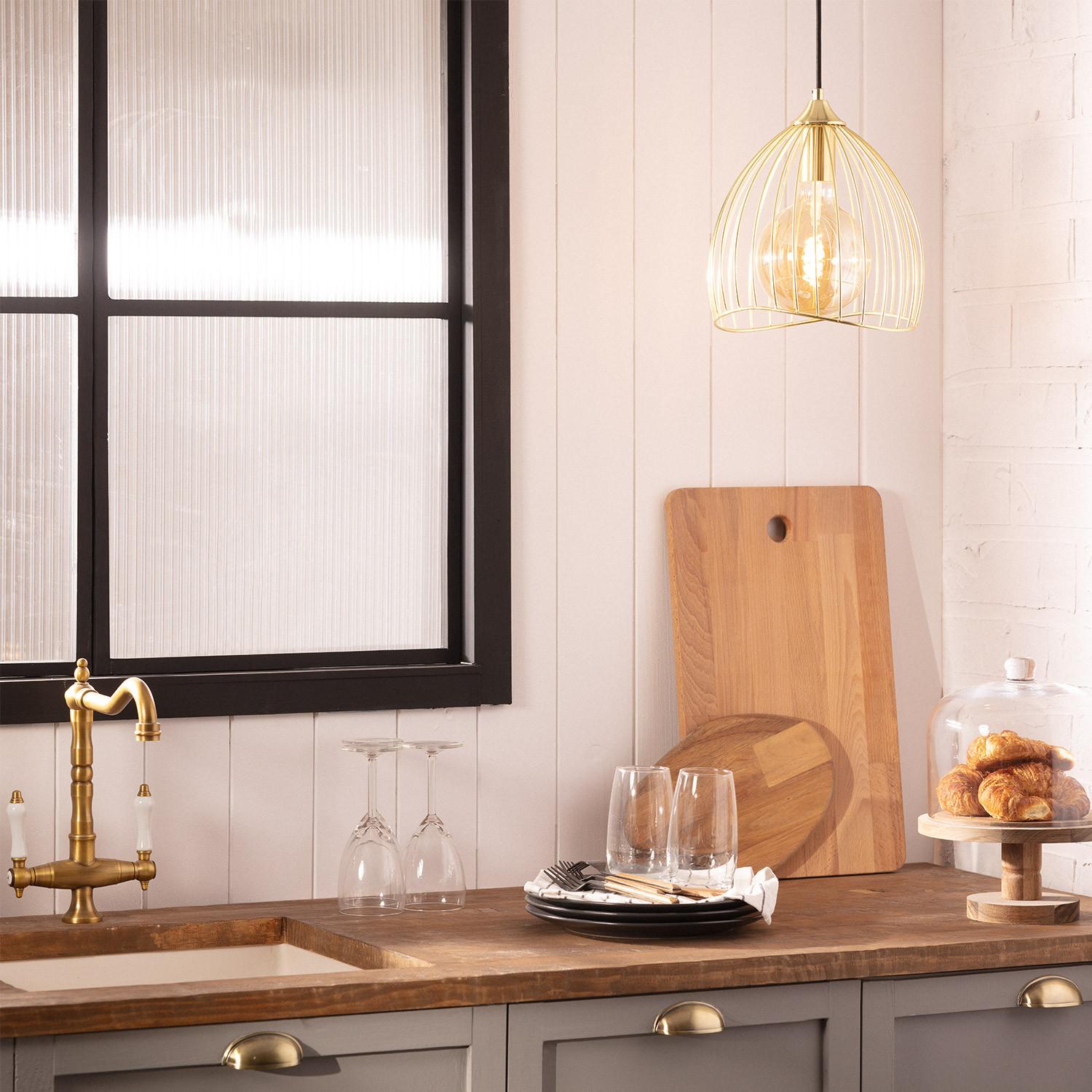 La lámpara colgante de metal Kibanda Bellús destaca por su diseño moderno y elegante, ideal para interiores que buscan un toque industrial y sofisticado. Fabricada en aluminio de alta calidad con acabado en negro, esta lámpara cuenta con una estructura de barras metálicas que envuelven la bombilla E27 (no incluida), permitiendo una iluminación abierta y decorativa. Su instalación colgante aporta personalidad a cualquier espacio, desde salones hasta comedores o zonas de trabajo. Compatible con bombillas de hasta 20W, soporta temperaturas de uso entre -20 °C y 50 °C, y cuenta con certificaciones CE, RoHS y UKCA que garantizan seguridad y calidad. Incluye 3 años de garantía y protección IP20 para uso en interiores.