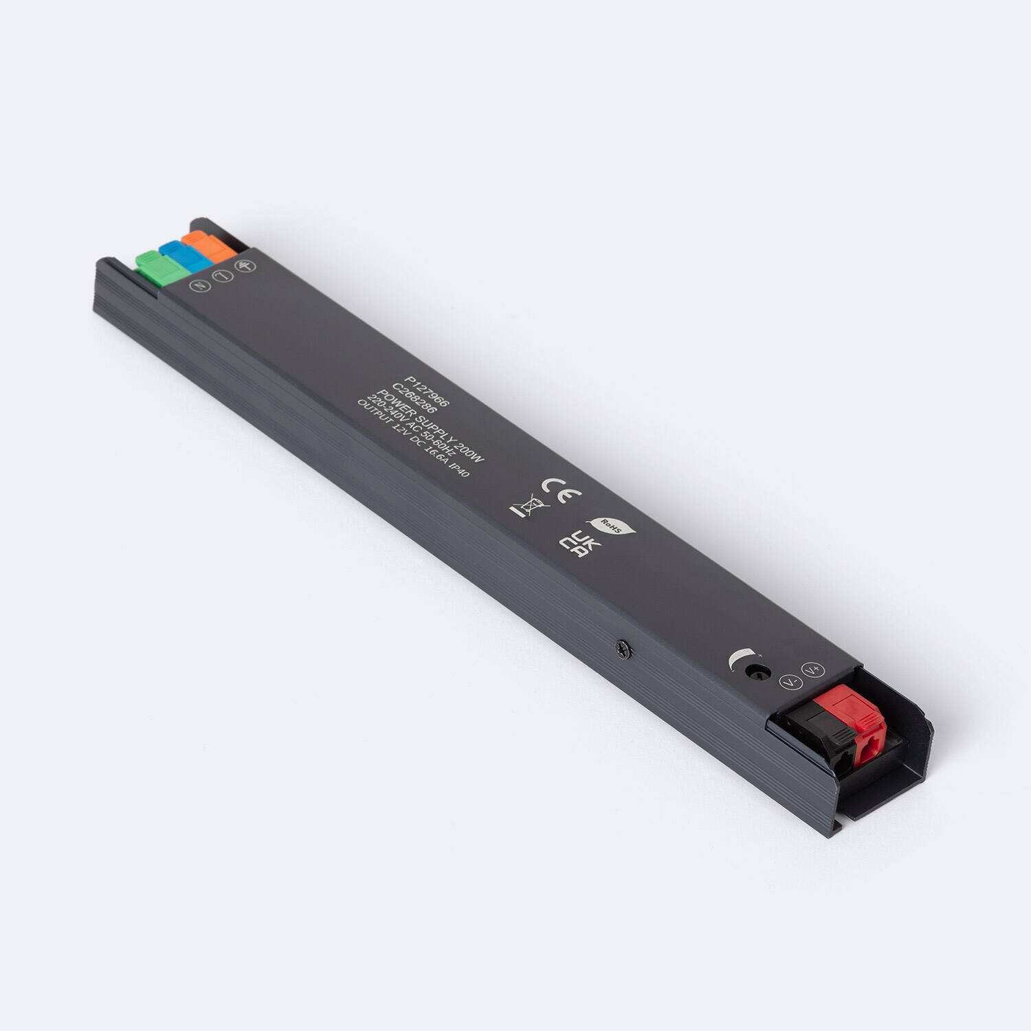 La Fuente de Alimentación Ultra Slim 12V DC IP40 ofrece una potencia de 200W y una intensidad de corriente de 16,6A, ideal para aplicaciones interiores que requieren un suministro estable y eficiente. Su diseño ultrafino en aluminio facilita su integración en espacios reducidos, mientras que su protección IP40 garantiza resistencia contra polvo y objetos sólidos. Funciona en un rango de temperatura de -20 °C a 50 °C, asegurando un rendimiento confiable en distintas condiciones ambientales. Cuenta con certificaciones CE, RoHS y TÜV, que avalan su calidad y seguridad. Además, dispone de un factor de potencia de 0,95 y una garantía de 3 años, lo que la convierte en una solución duradera y eficiente para proyectos eléctricos y de iluminación.