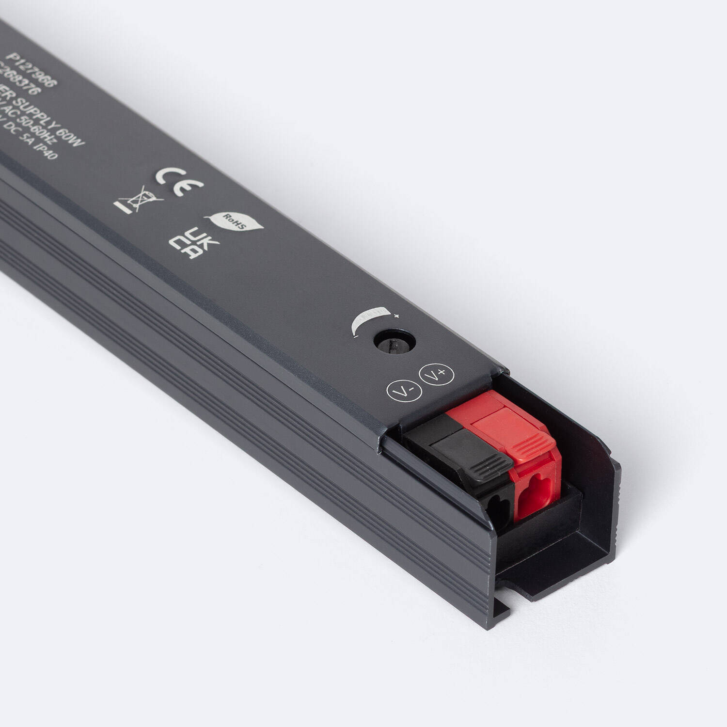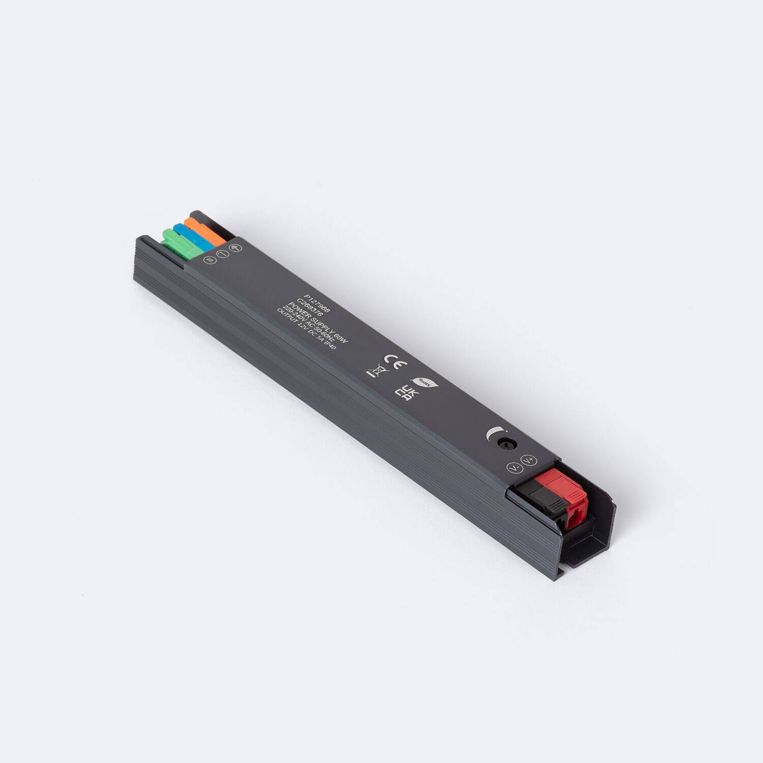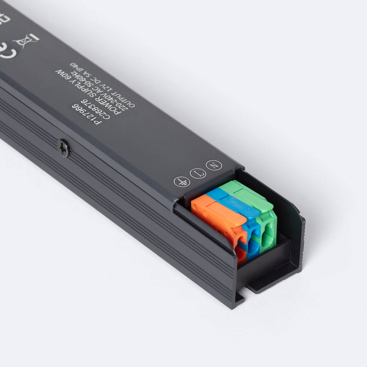 La Fuente de Alimentación Ultra Slim 12V DC IP40 ofrece una potencia de 60W y una intensidad de corriente de 5A, ideal para aplicaciones interiores. Su diseño ultrafino en aluminio garantiza una instalación compacta y eficiente, soportando temperaturas de trabajo entre -20 °C y 50 °C. Compatible con un rango de tensión de entrada de 100-265V AC y frecuencia de 50-60 Hz, esta fuente destaca por su alto factor de potencia de 0.95 y protección IP40, que asegura resistencia al polvo y protección básica contra objetos sólidos. Cuenta con certificaciones CE, RoHS y TÜV, y ofrece una garantía de 3 años, asegurando calidad y fiabilidad en su funcionamiento continuo.