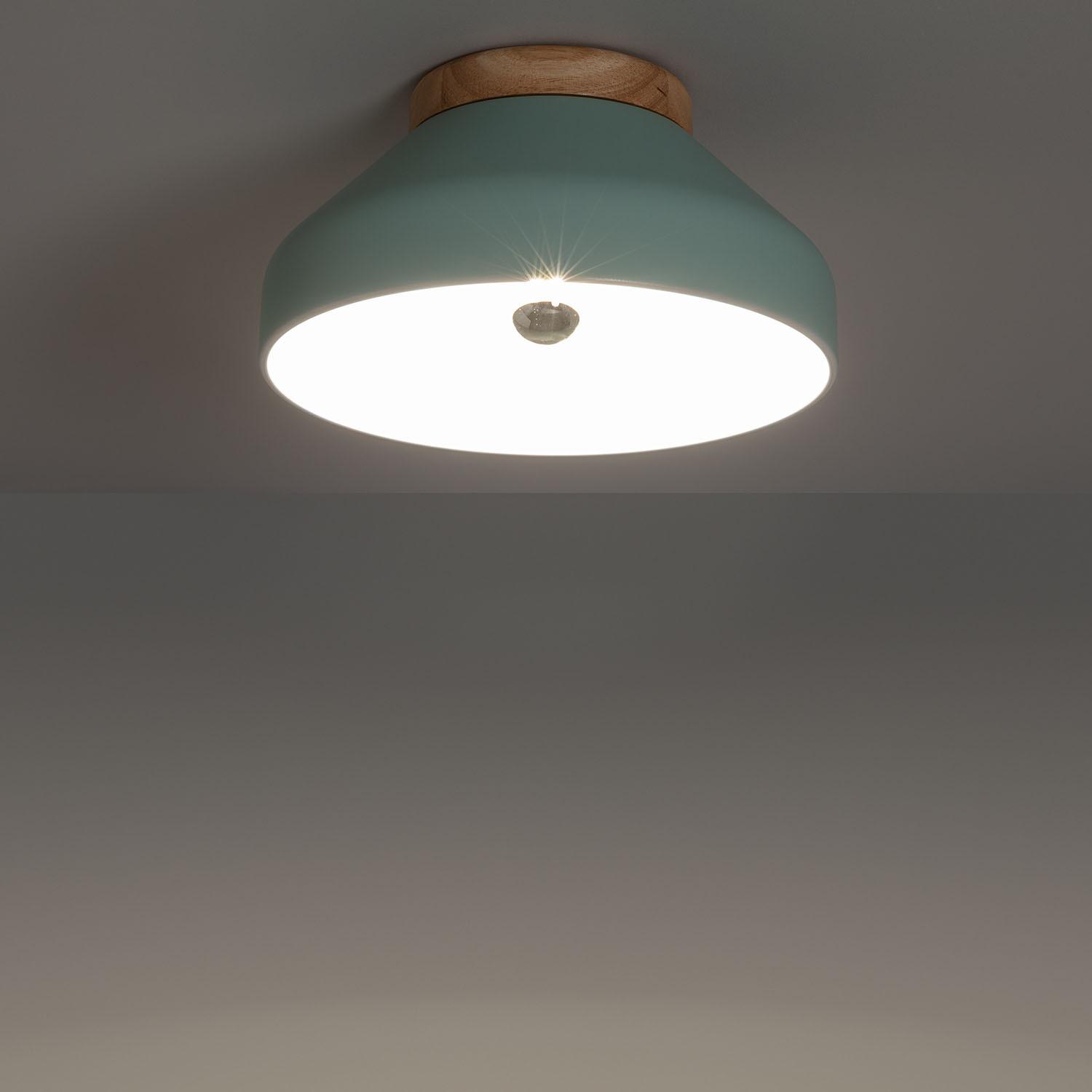 El plafón circular Hakon combina elegancia y funcionalidad con un diseño moderno en aluminio verde menta y detalles en madera natural. Con un diámetro de 300 mm, es ideal para iluminar espacios interiores con estilo. Su casquillo E27 permite elegir la bombilla que mejor se adapte a tus necesidades, ofreciendo una potencia máxima de 40W. Este plafón se instala fácilmente en superficie y está certificado con CE, RoHS y UKCA, garantizando calidad y seguridad. Resistente a temperaturas entre -20 °C y 50 °C, es perfecto para ambientes domésticos y comerciales. Su acabado en madera aporta calidez, mientras que el aluminio ofrece durabilidad y un toque contemporáneo. Incluye 3 años de garantía.
