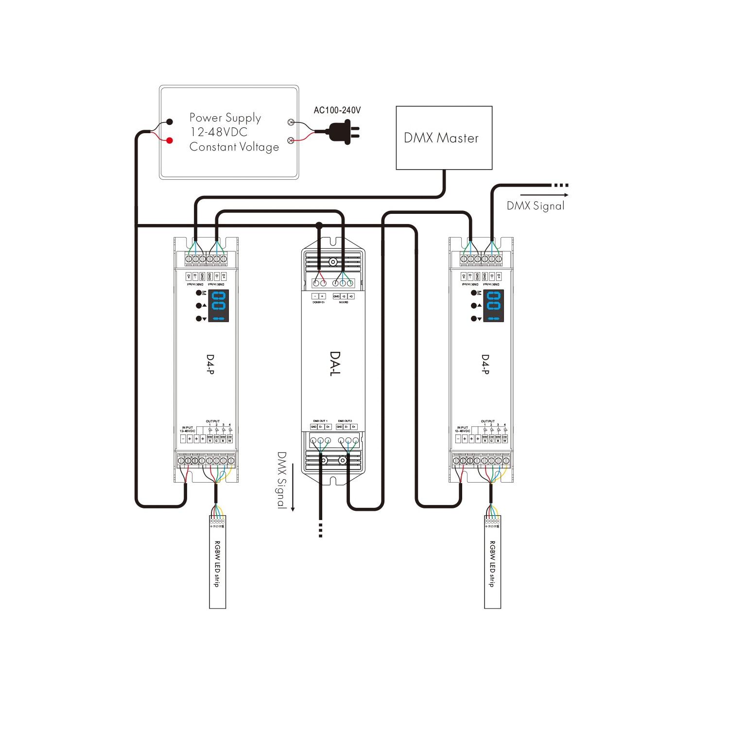 Amplificador DMX512 & RDM 12-48V DC 2 canales