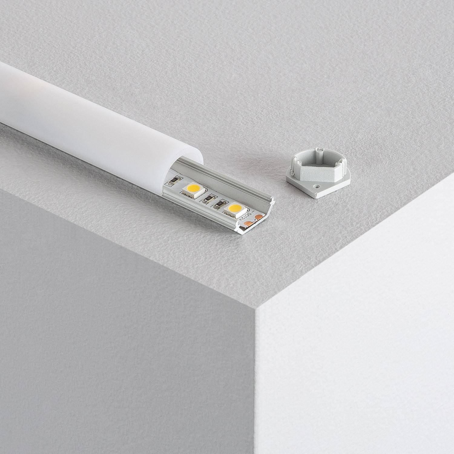 Perfil Aluminio Esquina 1m con Tapa Circular para Tiras LED hasta 10 mm