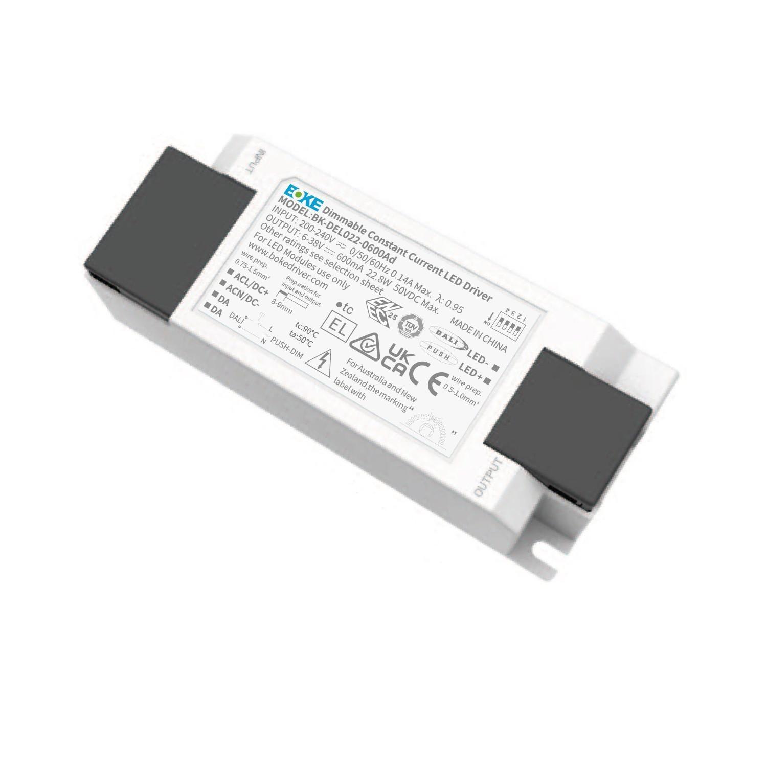 Driver BOKE Regulable DALI/PUSH 200-240V No Flicker Salida 6-38V 225-600mA 22.8W BK-DEL022