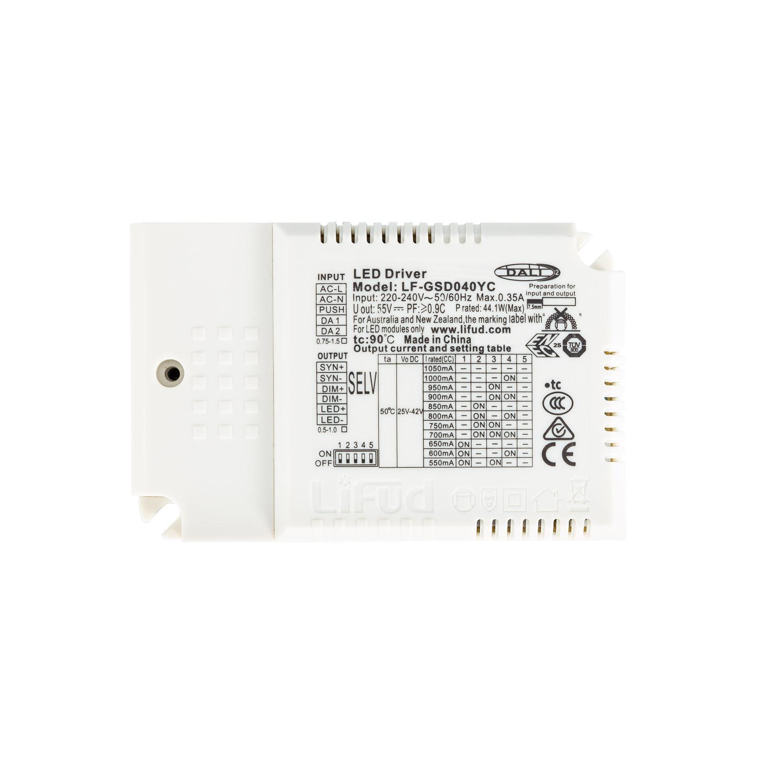Driver LIFUD Regulable DALI 1-10V 220-240V No Flicker Salida 25-42V 550-1050mA 23-44W LF-GSD040YC